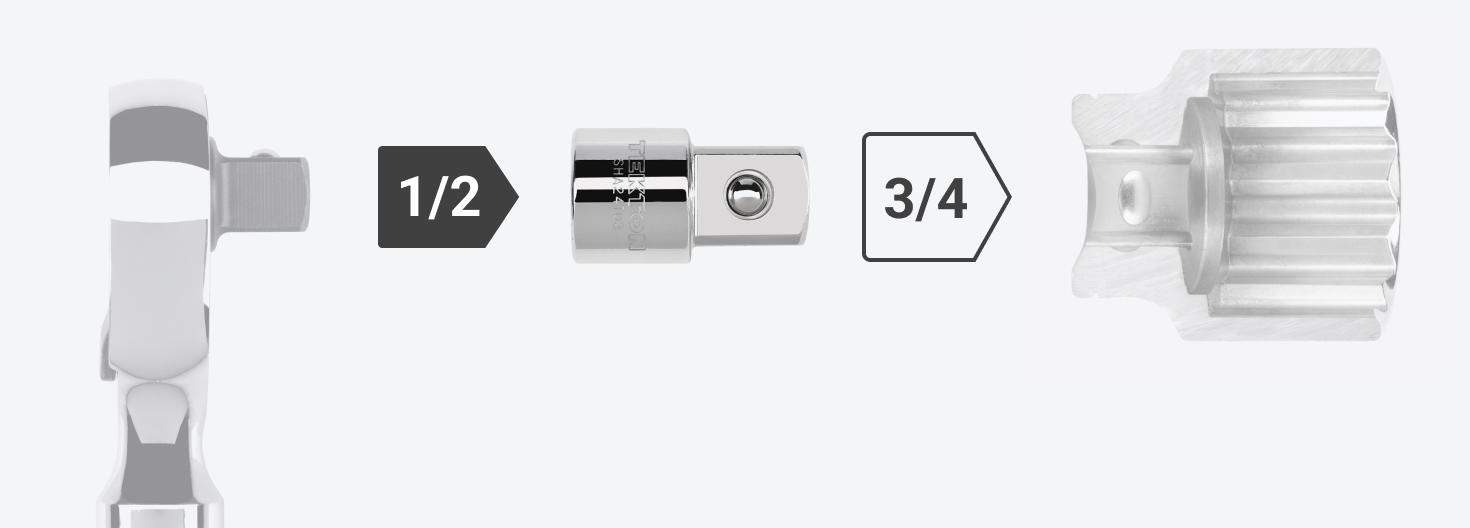An adapter can help compensate for lost or broken sockets, fill in gaps for incomplete size ranges, and expand the range of your socket system.