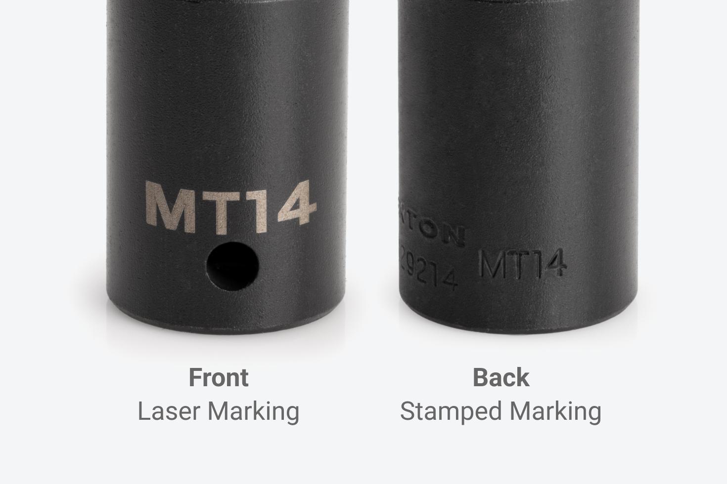 The size is marked in two ways on every socket—both as a high-visibility laser marking and a permanent stamped marking.