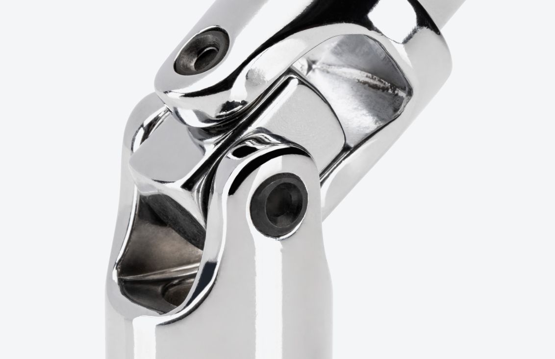The pin-style joint rotates smoothly and continuously in two axes at up to a 55-degree angle.