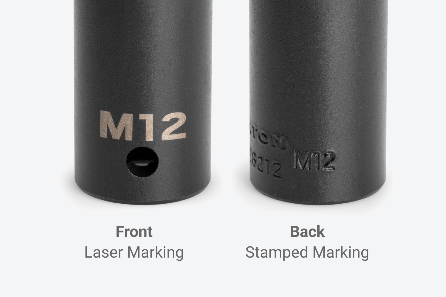 The size is marked in two ways on every socket—both as a high-visibility laser marking and a permanent stamped marking.