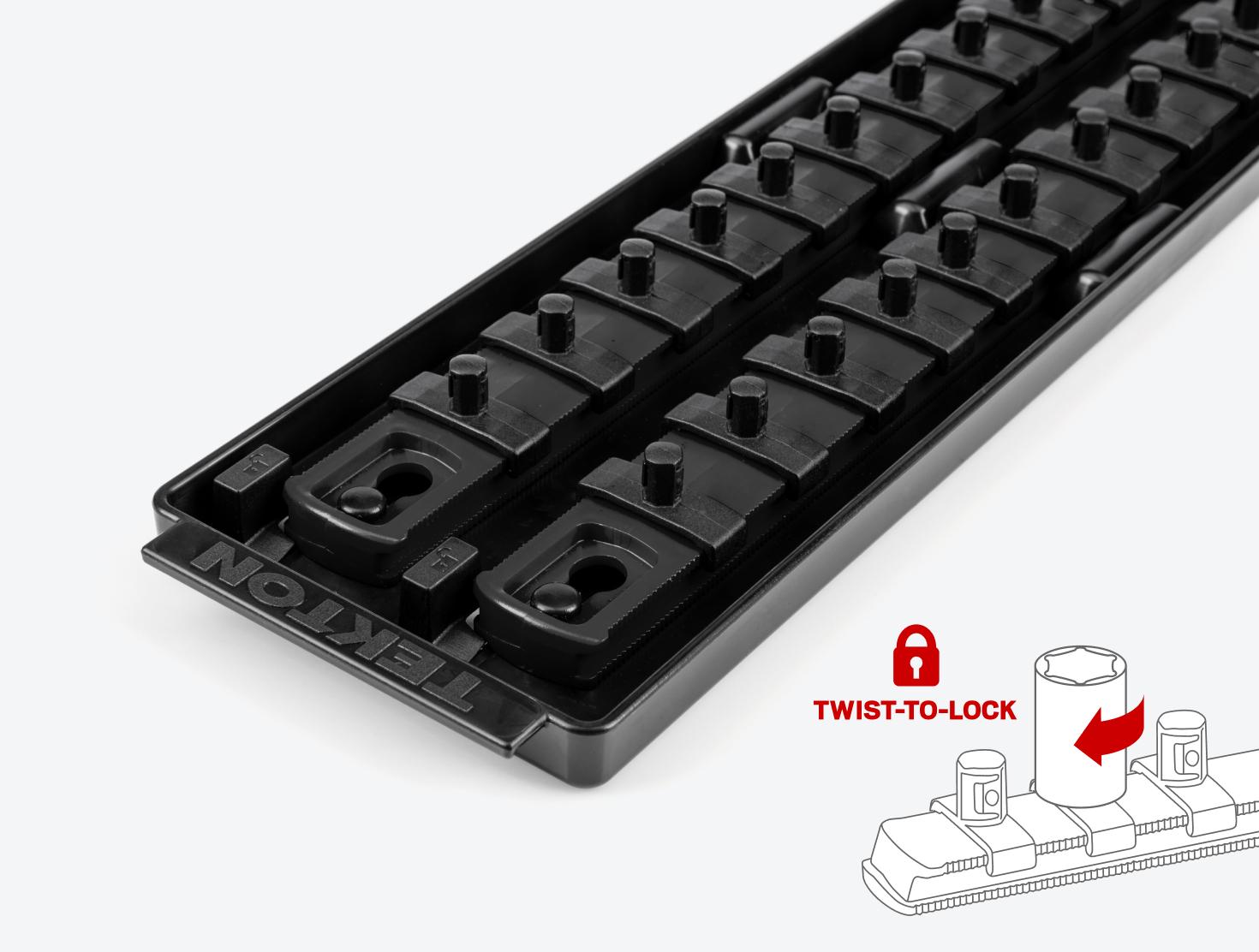 1/4 Inch Drive 12-Point Socket Set with Rails and Tray, 22-Piece (5/32-9/16 in.)