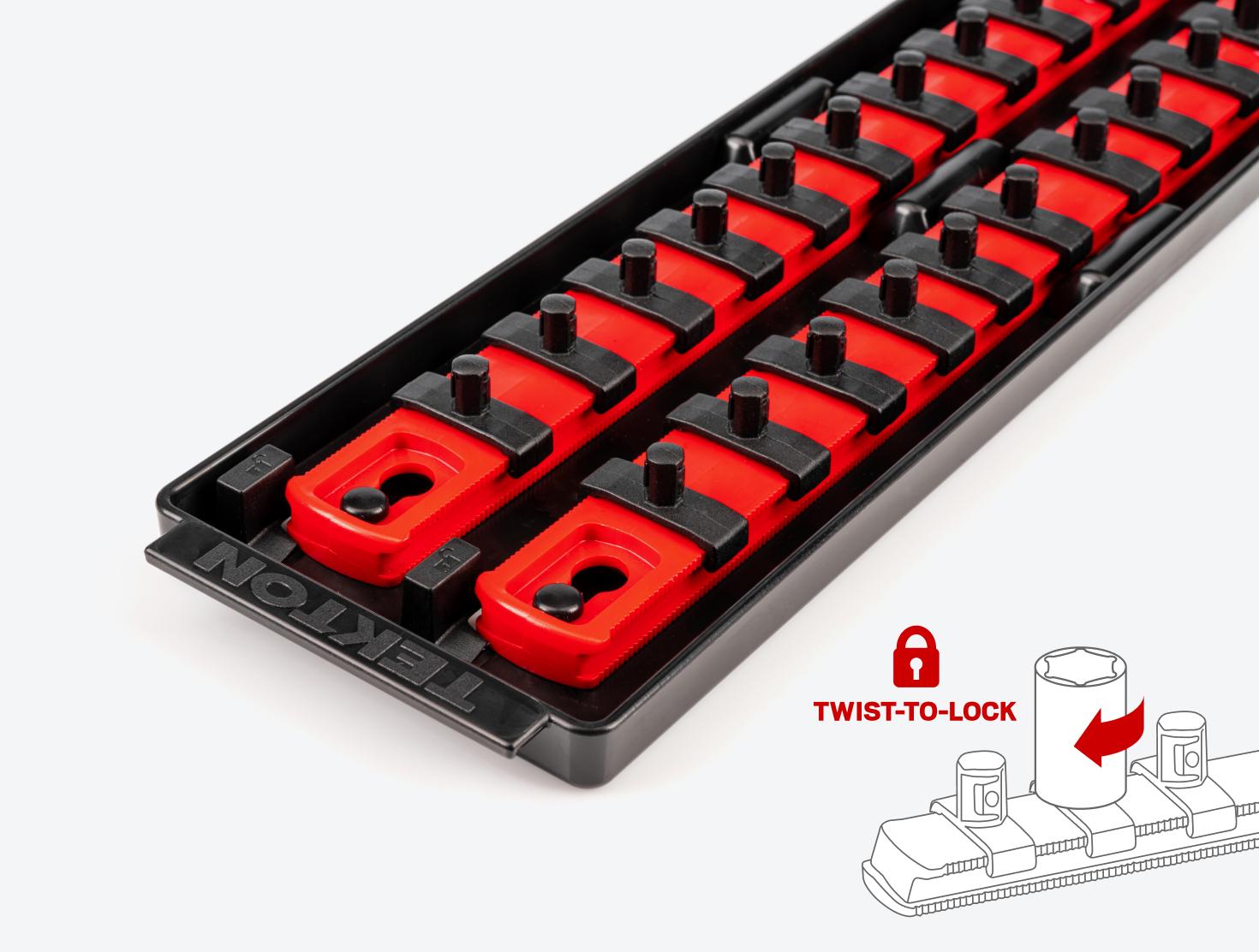 1/4 Inch Drive 6-Point Socket Set with Rails and Tray, 28-Piece (4-15 mm)