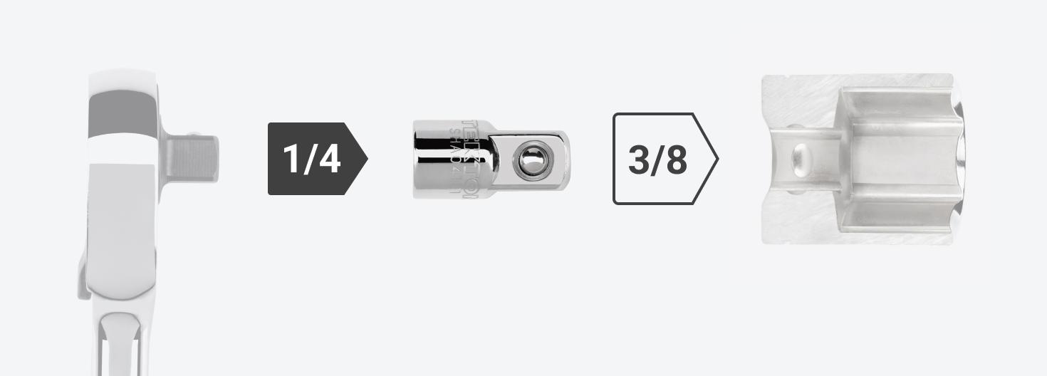 An adapter can help compensate for lost or broken sockets, fill in gaps for incomplete size ranges, and expand the range of your socket system.