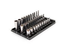 1/4 Inch Drive Shallow, Semi-Deep, and Deep 12-Point Socket Set with Rails and Tray (33-Piece)