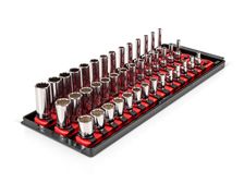 1/4 Inch Drive Shallow, Semi-Deep, and Deep 6-Point Socket Set with Rails and Tray (42-Piece)