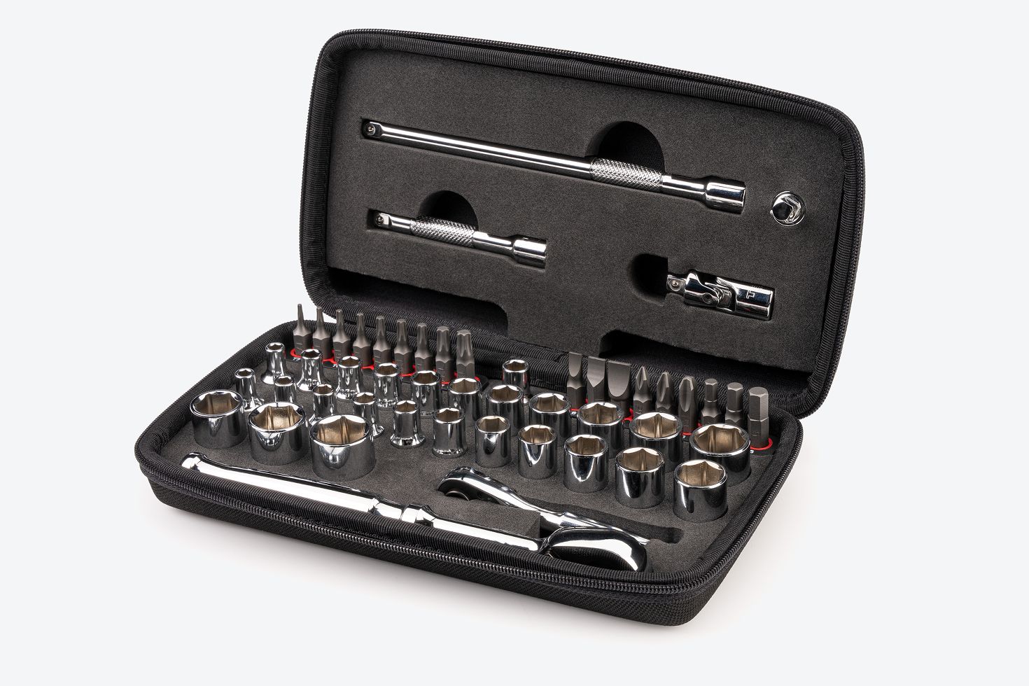 We designed this set to be a compact, portable solution for maintaining a wide range of yard equipment and powersports vehicles such as chainsaws, lawnmowers, four-wheelers, and outboard motors. It’s also a practical go-to set for general repairs beyond small engines.