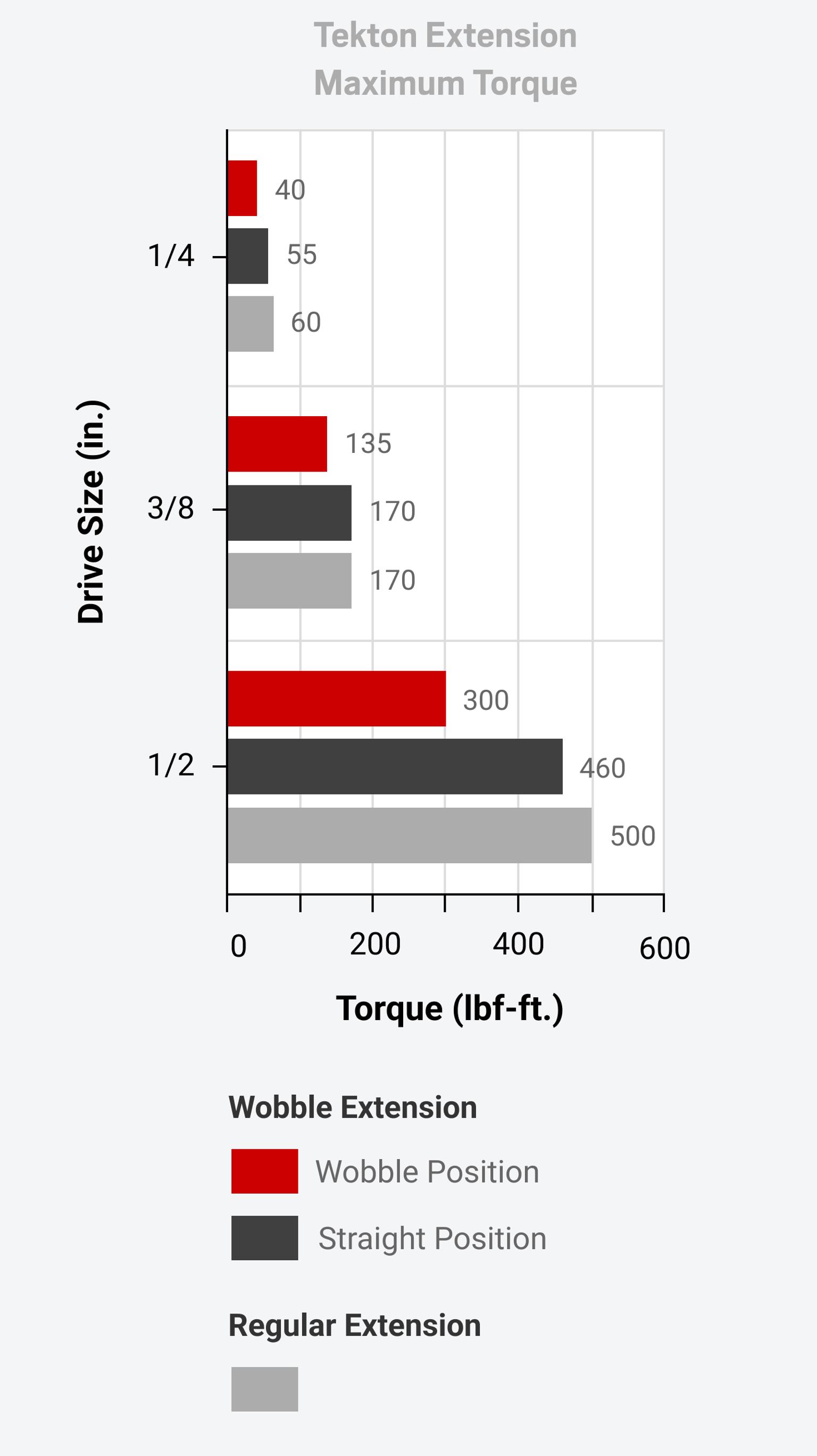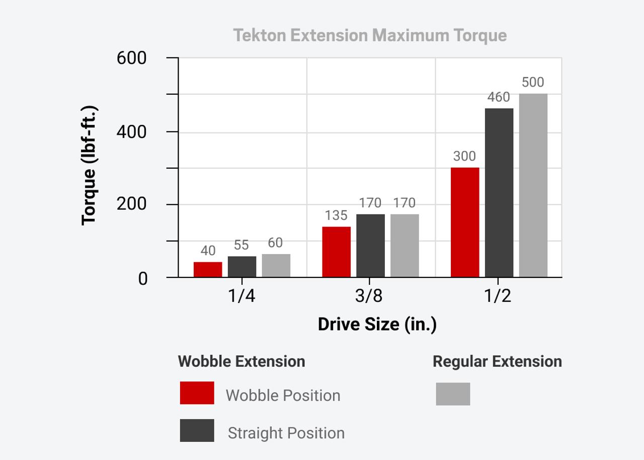 The narrowed base of the wobble extension drive tang allows it to operate at an angle, but also makes it slightly less strong than a regular extension.