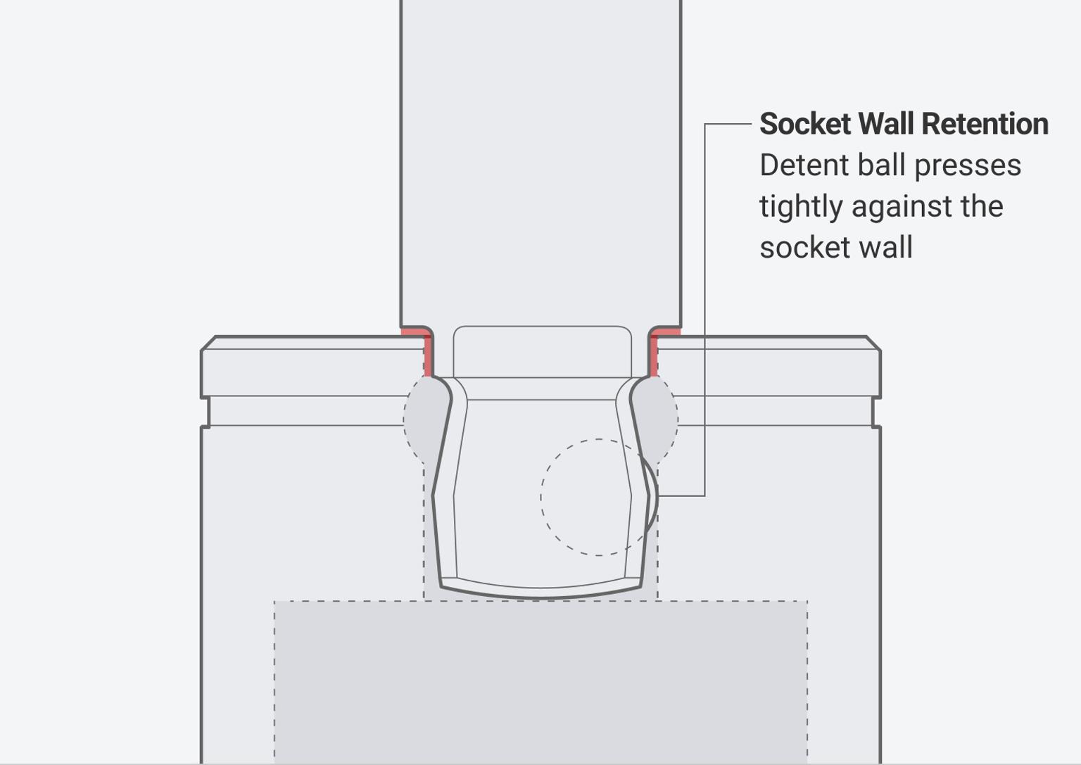 The extension’s shoulders engage with the socket and keep it in a fixed straight position.