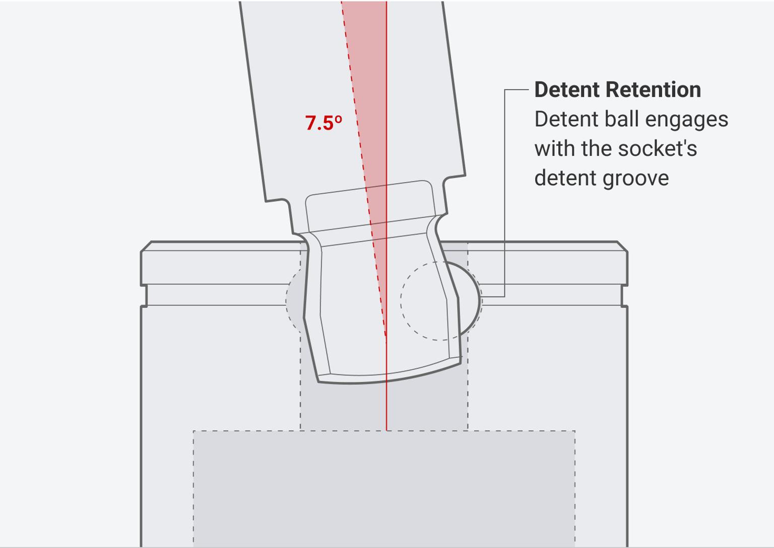 The double tapered drive tang allows the extension to operate at an angle of at least 7.5 degrees in any direction.