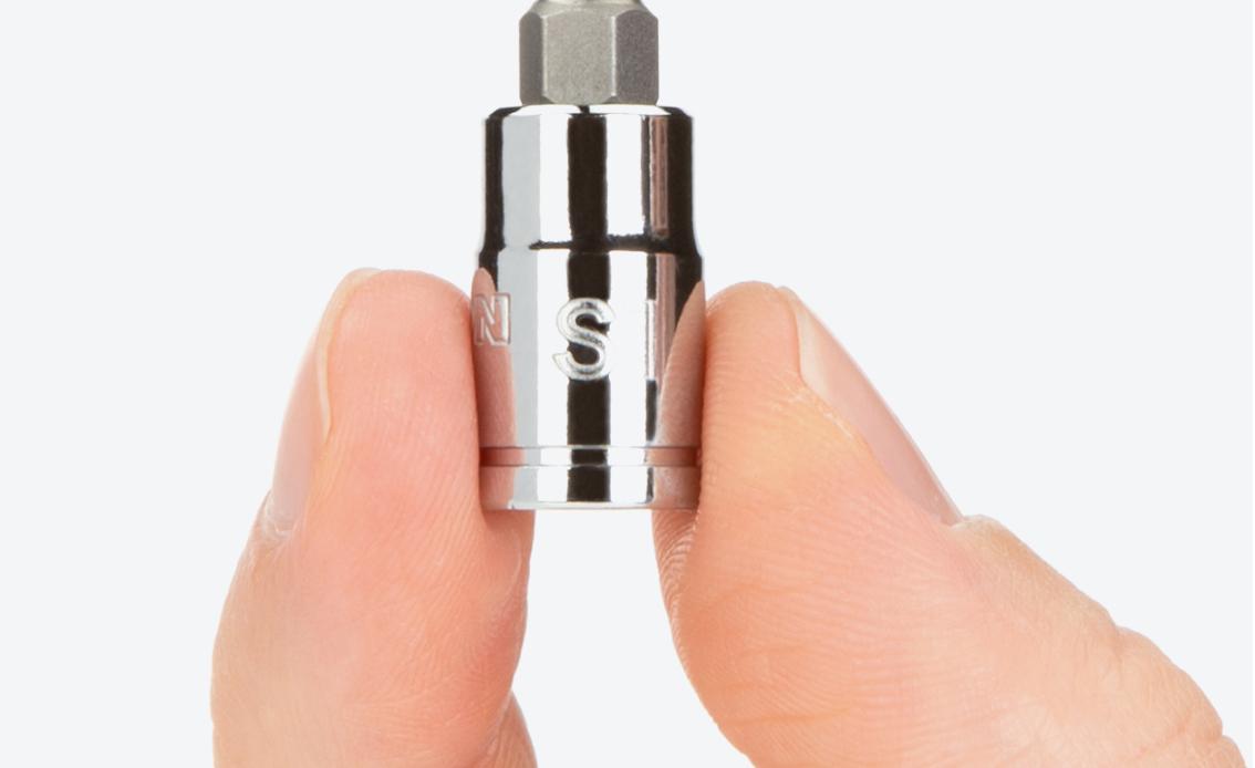 - Four detent grooves provide a secure connection with the retaining ball of a drive tool