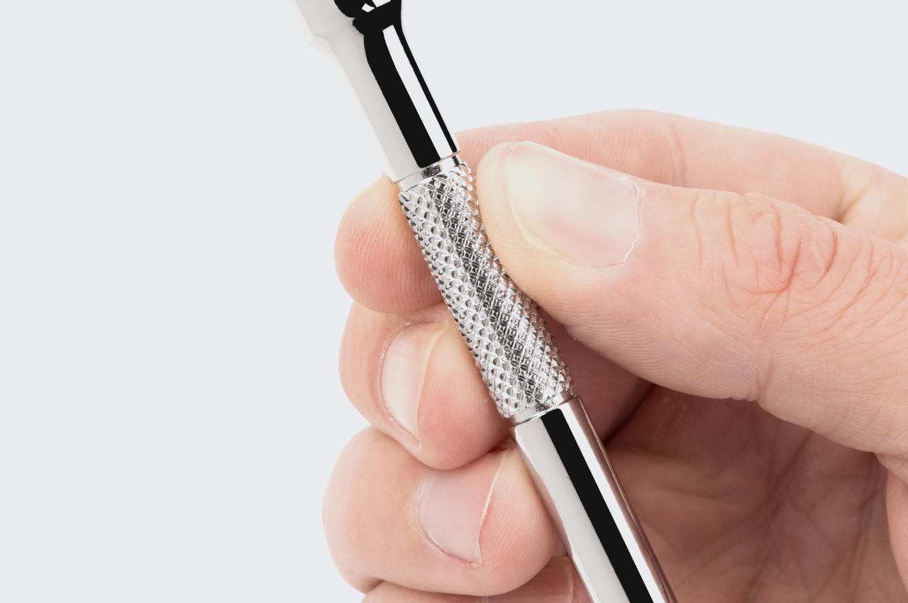 The knurled band offers a firm grip for turning fasteners and attaching or removing extensions from a drive tool.