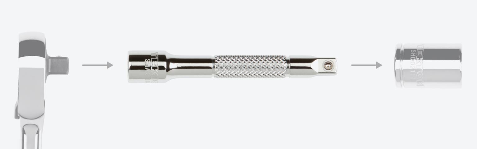 Attach an extension to your drive tool for reaching past obstructions or into tight, narrow spaces with your socket.