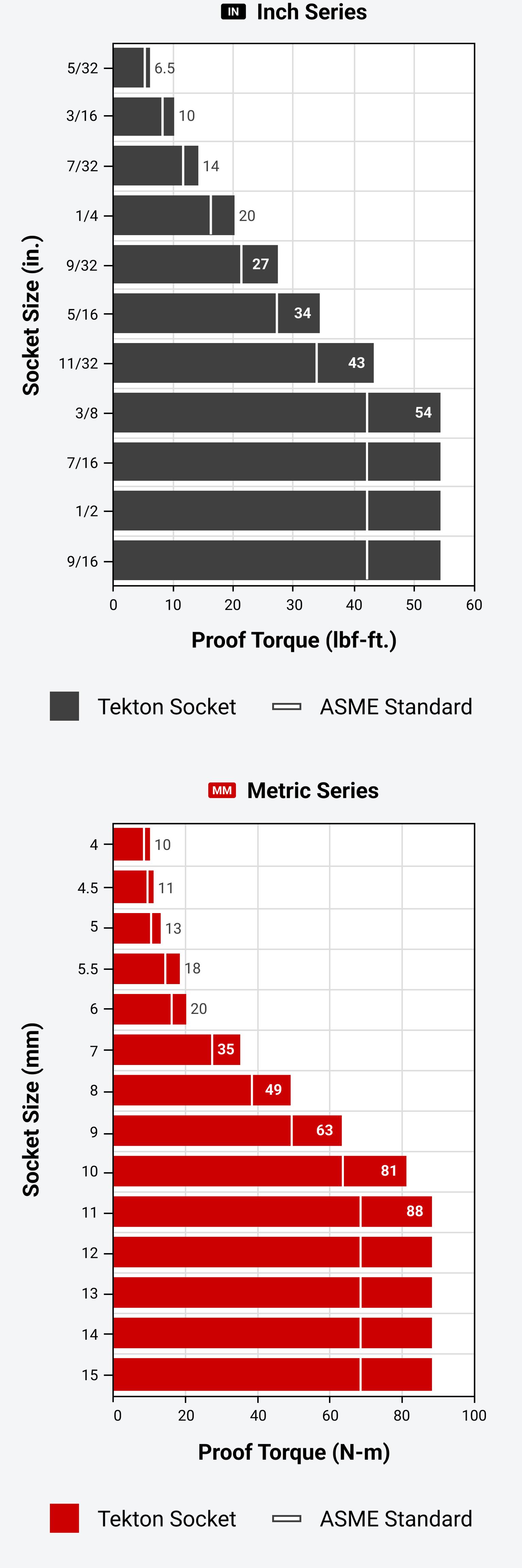 Meets a minimum value of 1.3 times the ASME standard for proof torque. Verified by a single-cycle test that applies torque until the specified value is reached without failure or permanent deformation.