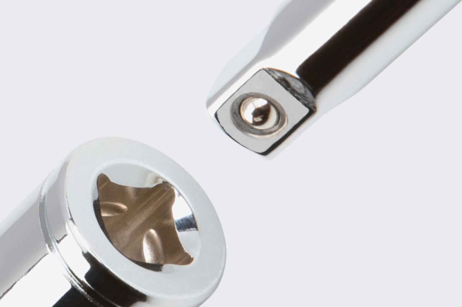 Detent grooves and beveled edges provide a smooth and secure connection with the drive tool.