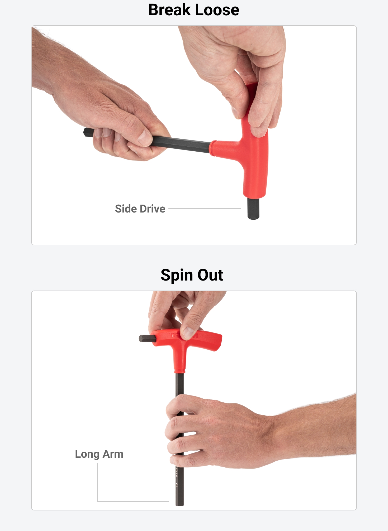 Our T-handle keys are made the same way as our L-keys with the addition of a molded handle that makes applying torque easier and more comfortable.