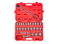 19 - 50 mm3/4 Inch Drive Shallow 6-Point Socket and Ratchet Set with Case (26-Piece)