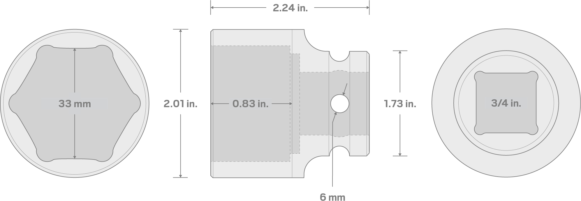 3/4 Inch Drive x 33 mm 6-Point Impact Socket