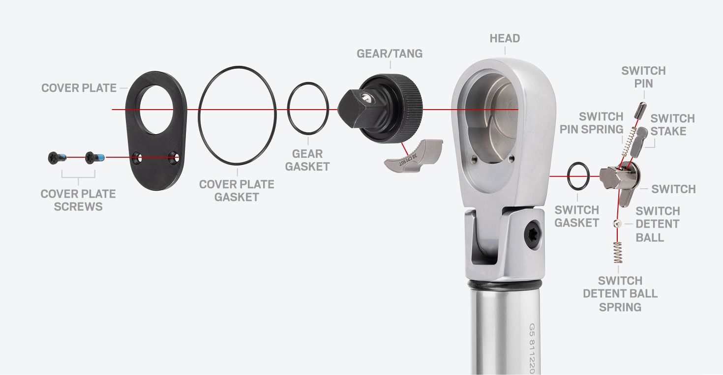 3/8 Inch Drive 90-Tooth Dual-Direction Electronic Torque Wrench Ratchet Head Service Kit