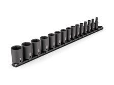 3/8 Inch Drive Semi-Deep 12-Point Impact Socket Set with Rail (15-Piece)