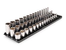 3/8 Inch Drive Shallow, Semi-Deep, and Deep 12-Point Socket Set with Rails and Trays (45-Piece)