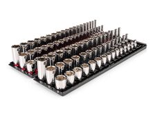 3/8 Inch Drive Shallow, Semi-Deep, and Deep 6-Point Socket Set with Rails and Trays (102-Piece)