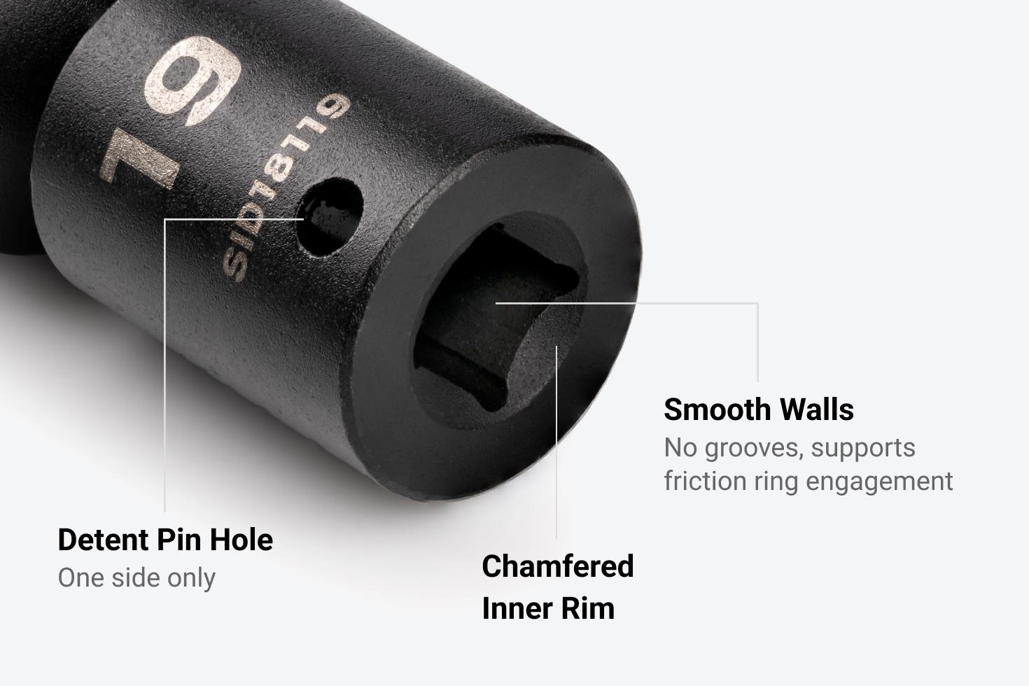 These sockets are shorter than our standard length impact sockets on u-joints, allowing access into tighter areas. One less connection point creates a stiffer joint reducing the loss of impact power.