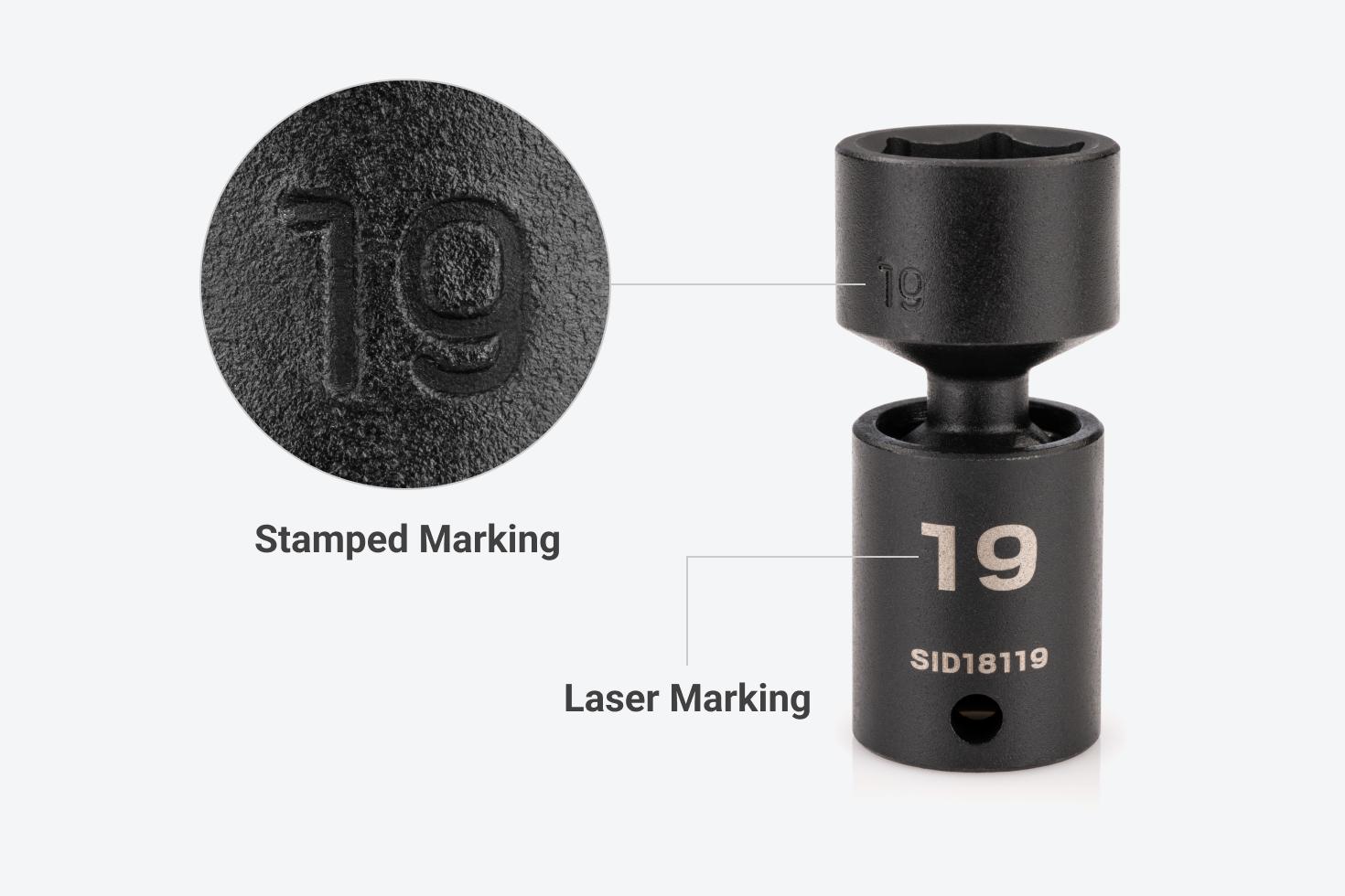 The size is marked in two ways on every socket—both as a high-visibility laser marking and a permanent stamped marking.
