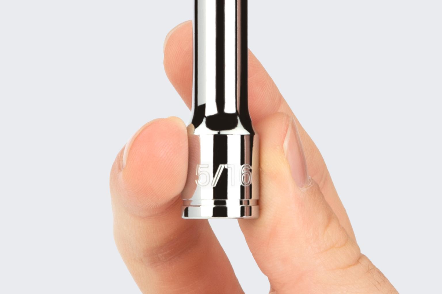 Narrowed diameter stretches to the base of the socket on small, deep-length sizes. This provides greater reach into tight, recessed areas.
