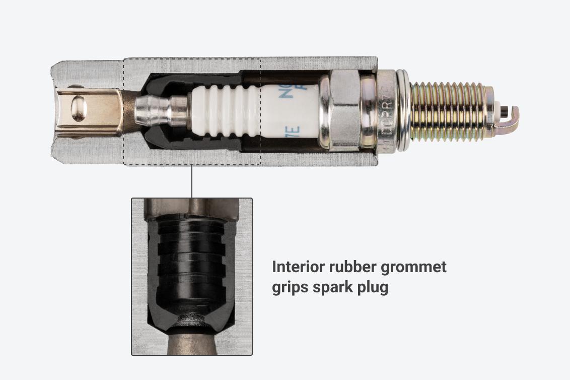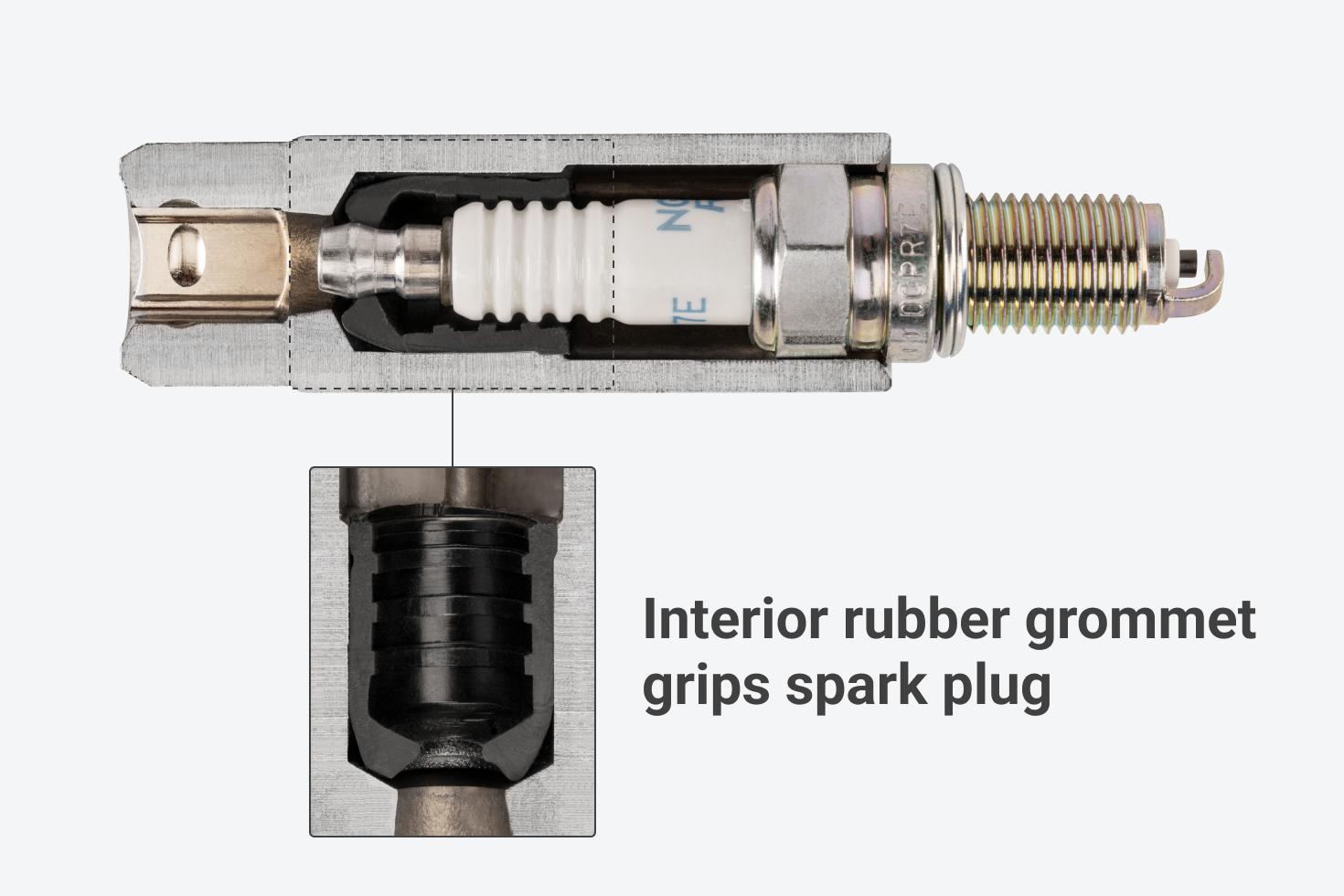 The thin walls and extended length of the socket allow you to reach deep into spark plug wells. An interior rubber grommet firmly grips the neck of plugs for careful removal and installation.