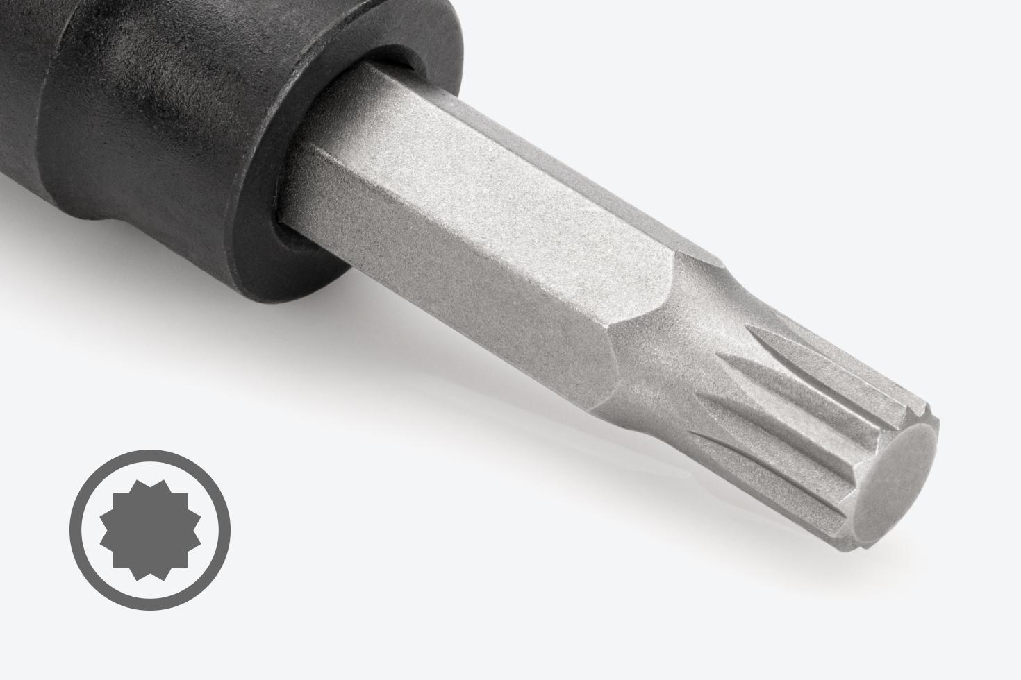 The triple square (also called XZN) tip is machined to precise tolerances for an exact fit with triple square fasteners.
