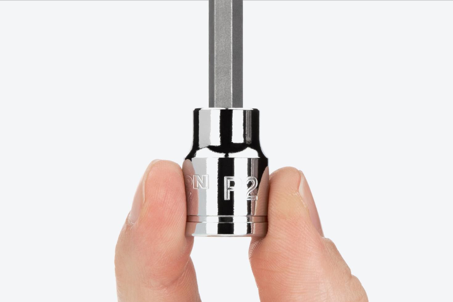 Detent grooves and beveled edges provide a smooth and secure connection with the drive tool.