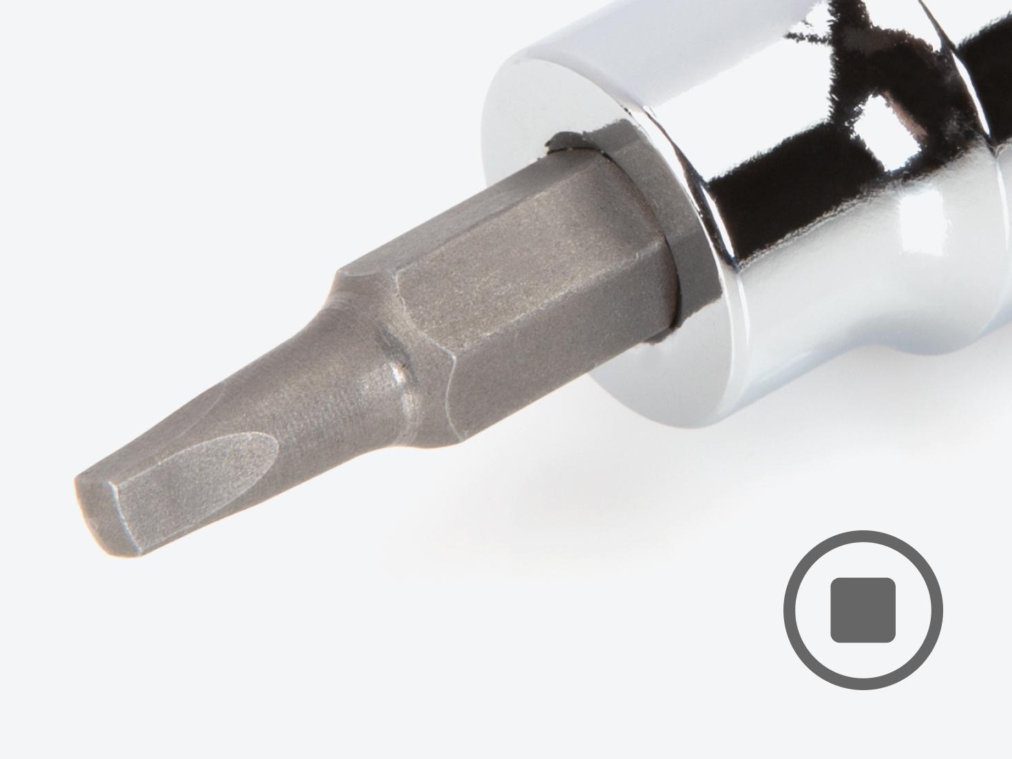 - The square bit tapers slightly toward the tip for easy insertion and strong engagement with fastener heads