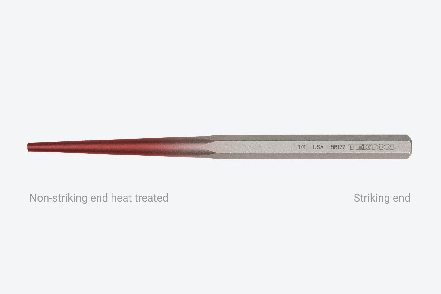 Each punch is individually heat treated to harden and strengthen the tip while maintaining the soft temper of the striking end.