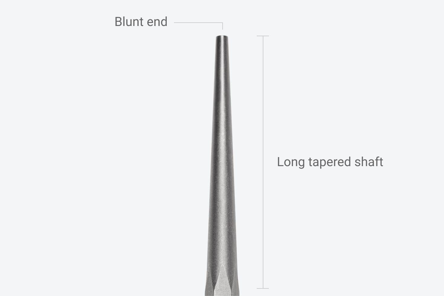 The gradually tapered long alignment punch is machined to precise tolerances and is designed to align holes to position multiple parts for accurate assembly. The longer length makes it ideal for creating more leverage.