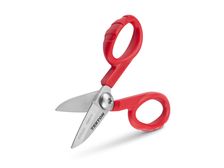 These compact scissors have short, stout blades for high-leverage cutting without twisting. One blade has micro-serrations that bite into material to prevent slipping, and a notch that captures soft wire, rope, or tubing.