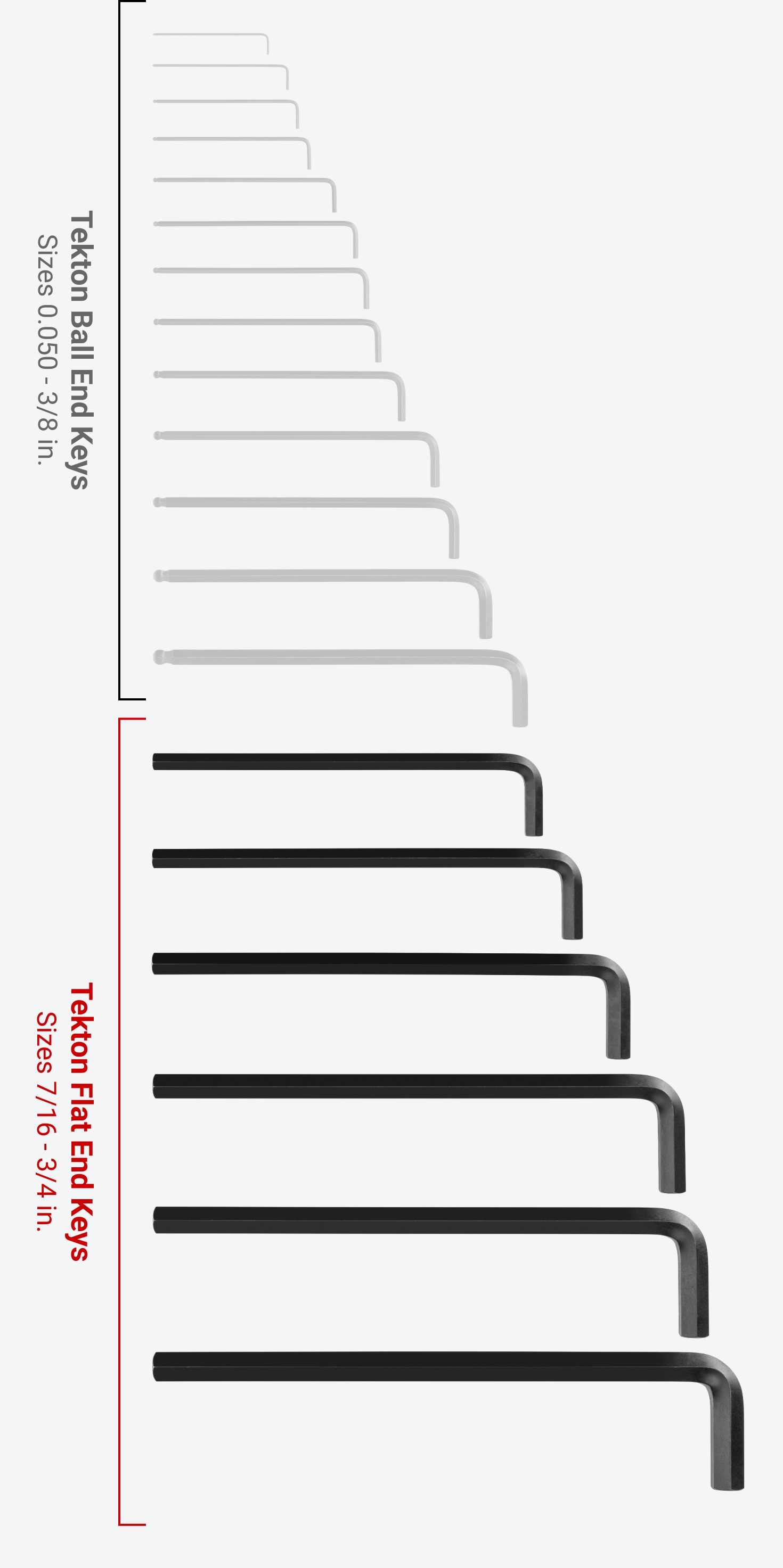 Tekton L-key sizes are marked in two ways—with a high-visibility laser marking and a stamped marking.