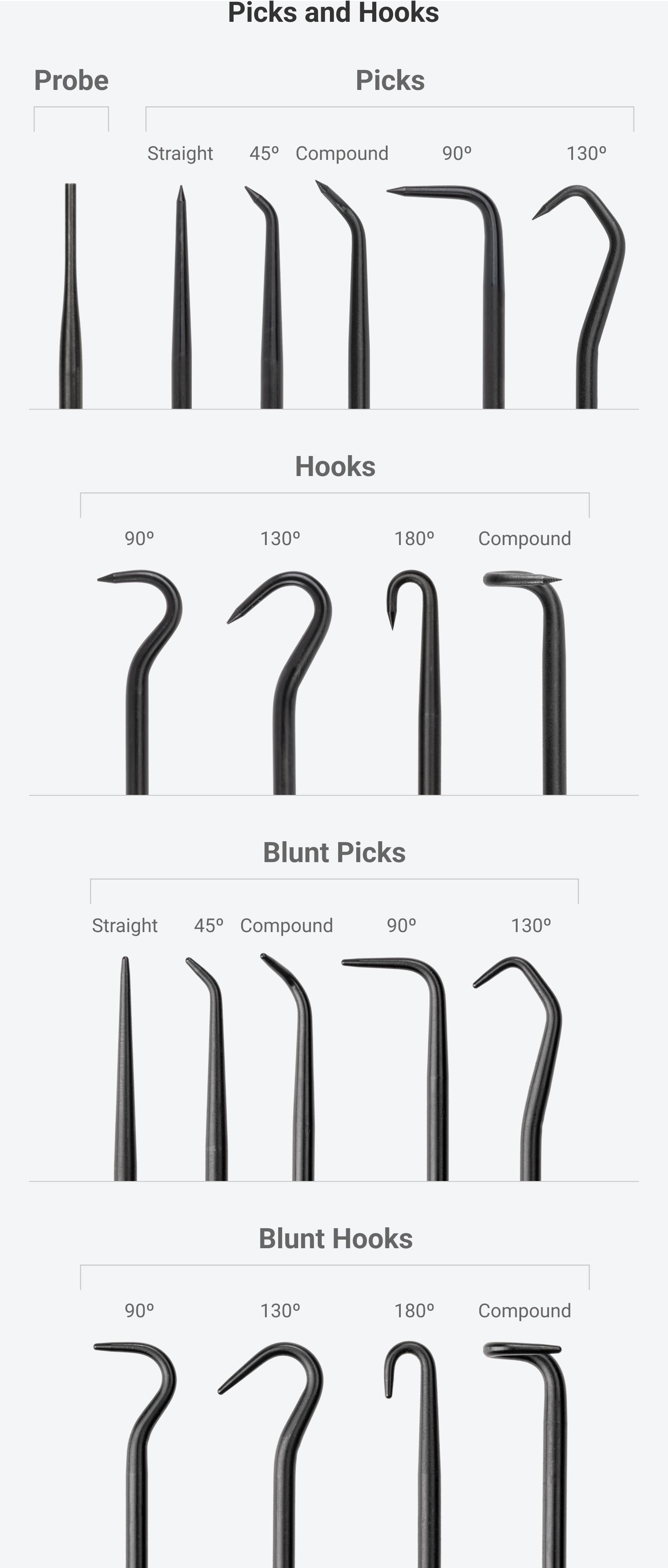 Each tip comes to a sharp 30-degree tapered point for precise scraping, piercing, and scribing.