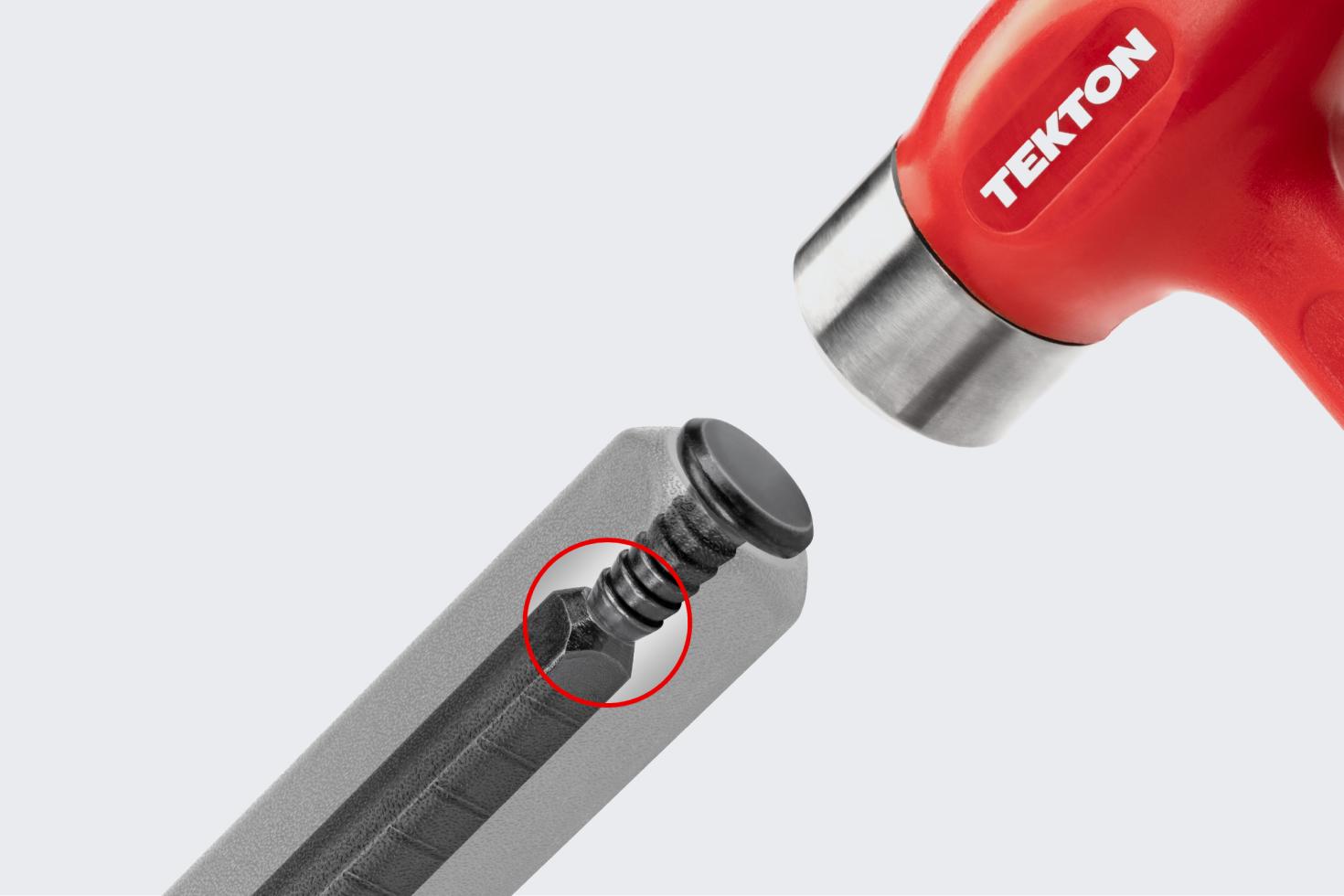 The 1-inch diameter solid steel striking cap is designed to be struck by a hammer. The end of the cap directly contacts the bar stock so that any force you apply is effectively transferred through the tool.