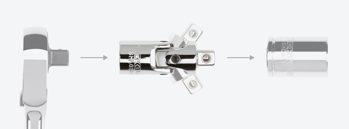 Attach a universal joint to your drive tool for reaching around obstructions and accessing fasteners at an angle with your socket.