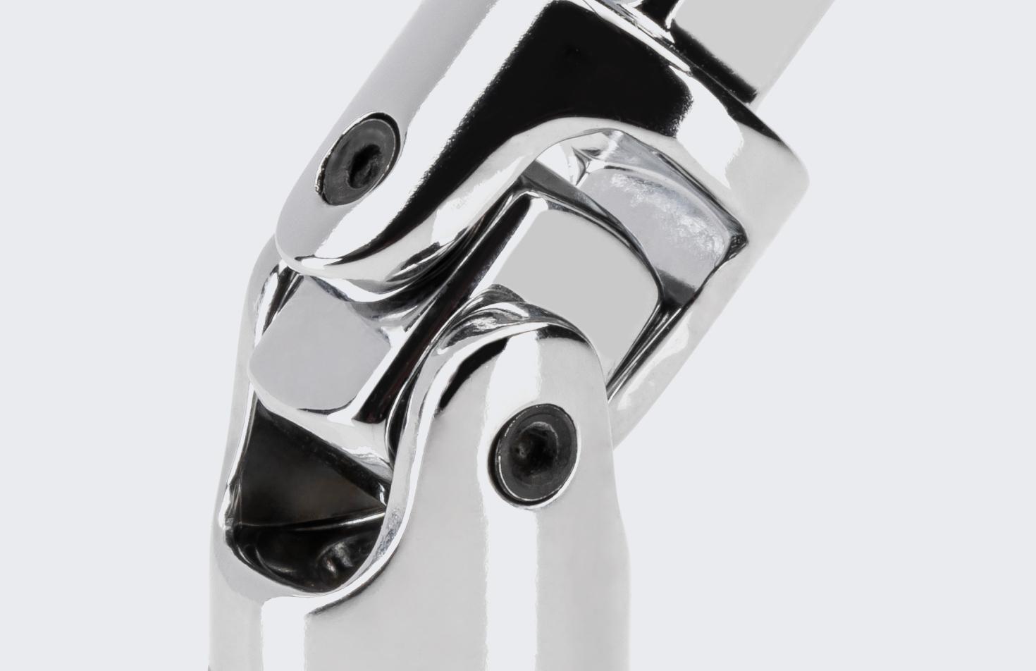 The pin-style joint rotates smoothly and continuously in two axes at up to a 55-degree angle.