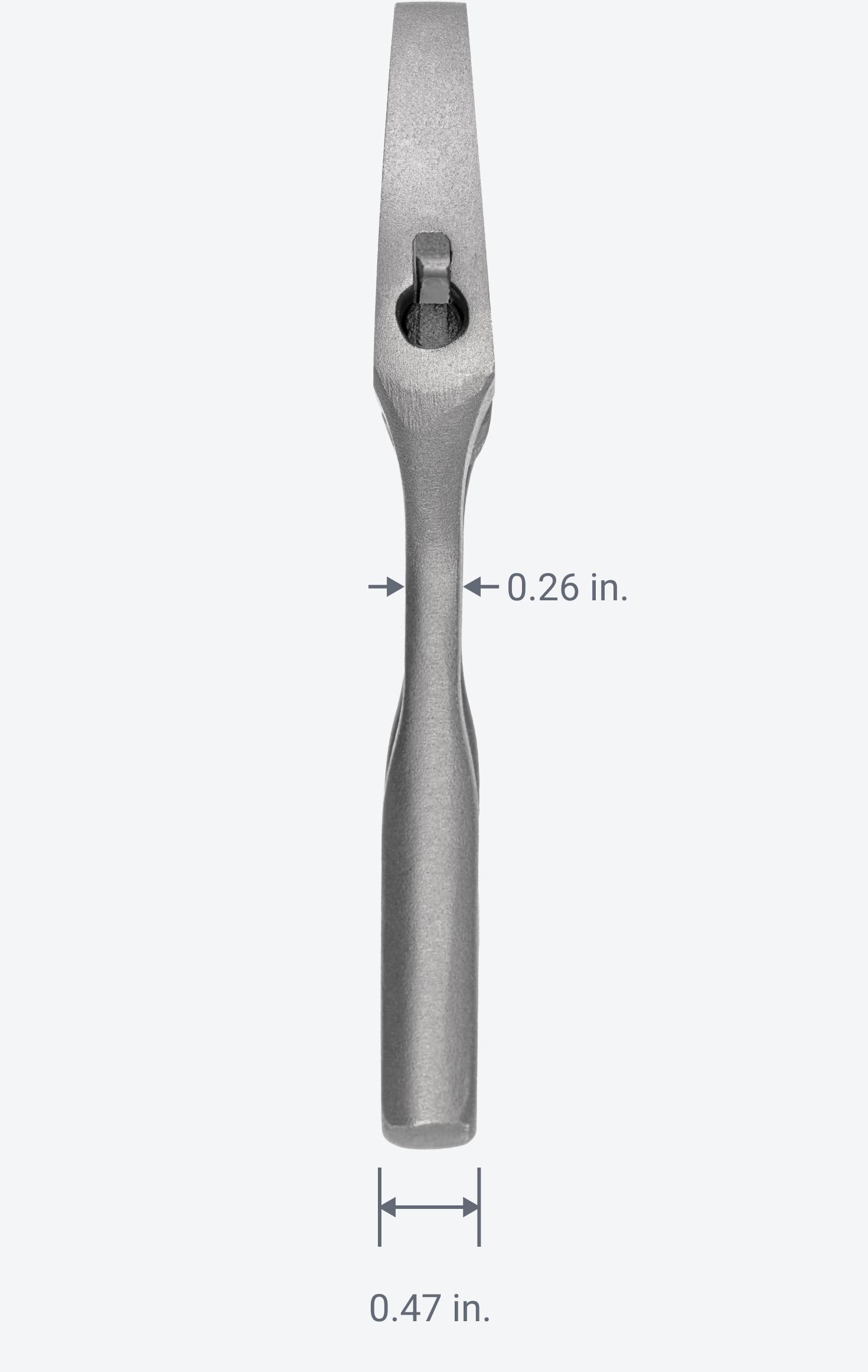 The back portion of the handle is thicker for a more comfortable grip and better control.